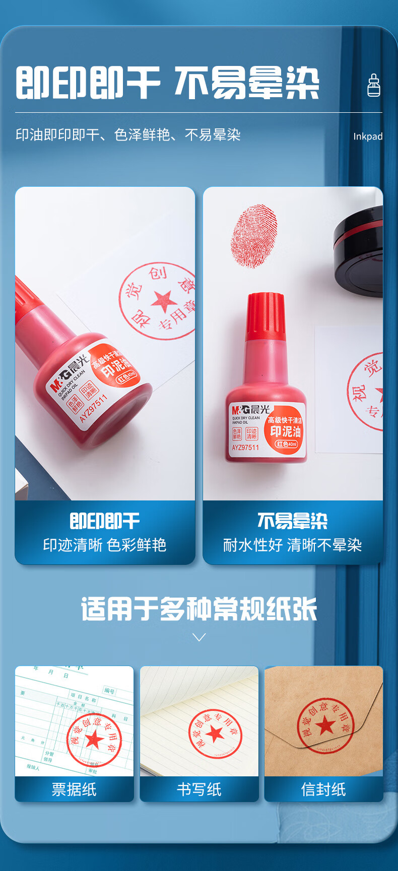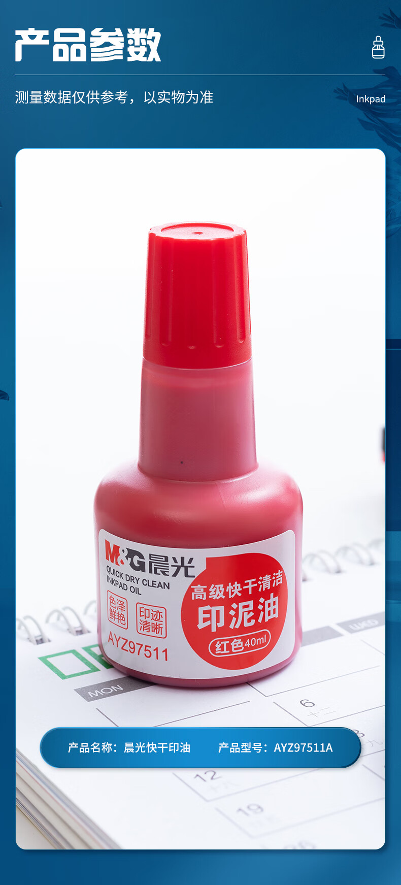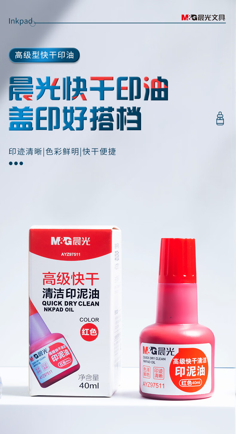 商品名稱:晨光AYZ97511 印油 40ml財(cái)務(wù)印泥快干印章清潔印油 紅色 單個(gè)裝