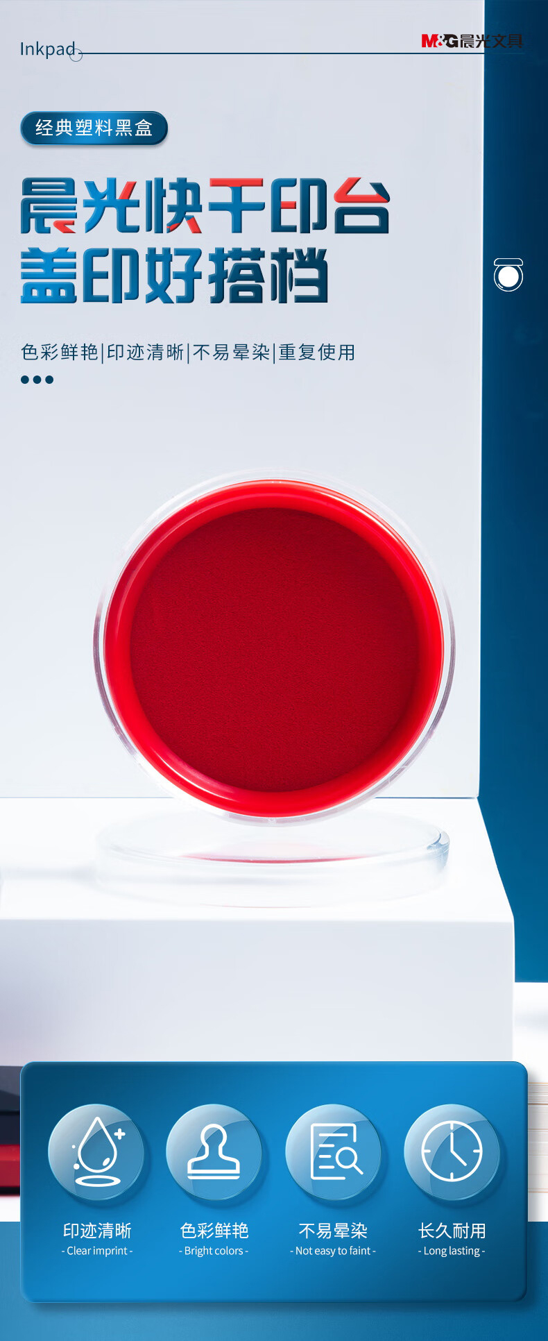 商品名稱:晨光AYZ97512 快干印臺(tái) φ80mm透明圓形財(cái)務(wù)快干印臺(tái)印泥 紅色單個(gè)裝