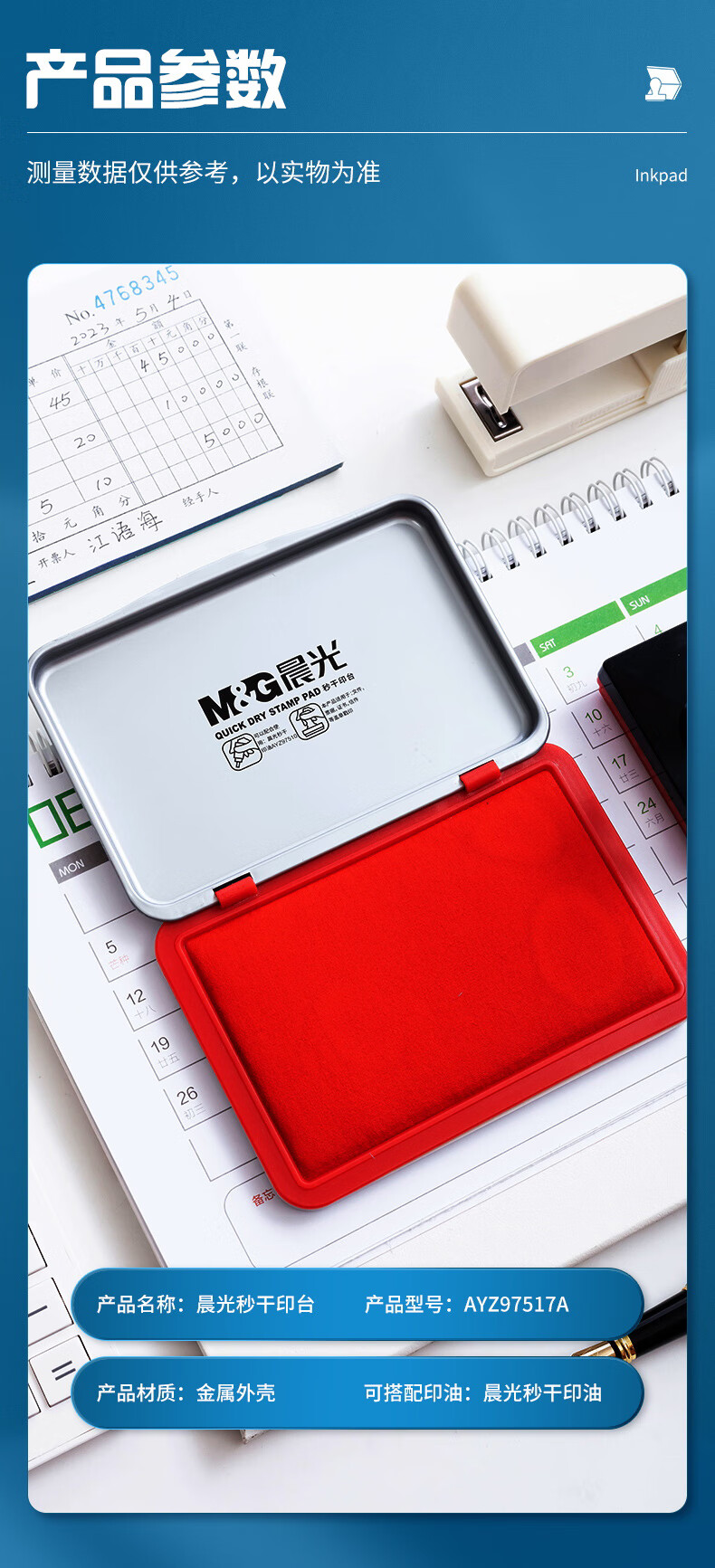 商品名稱:晨光120*80mm金屬方形中號(hào)秒干印臺(tái)印泥 紅色單個(gè)裝AYZ97517