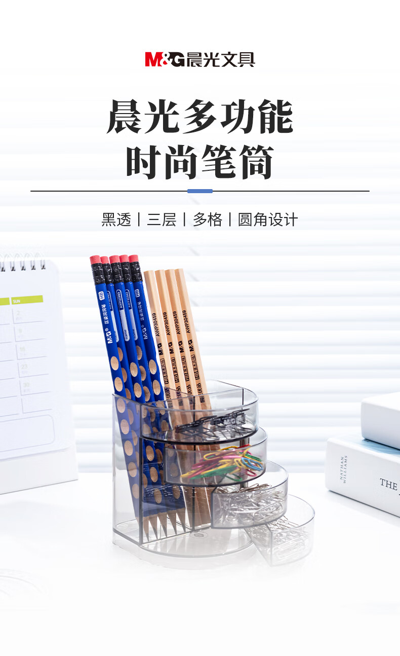 商品名稱:晨光透明三層時(shí)尚筆筒 多功能桌面收納盒 黑色 單個(gè)裝ABT98443