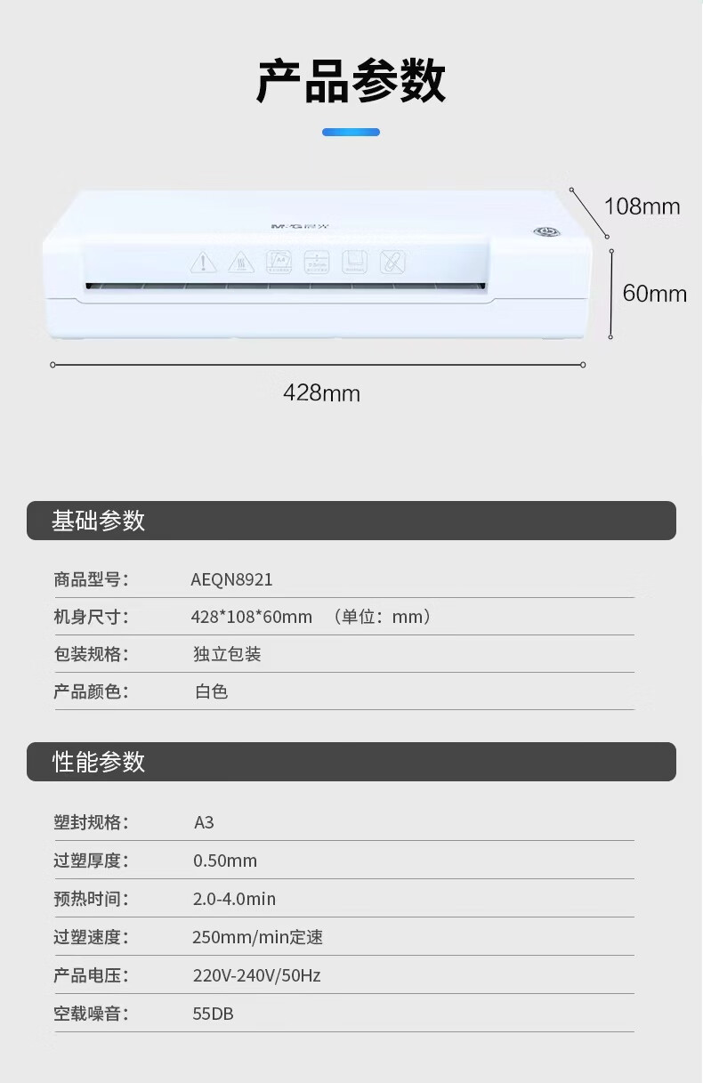 商品名稱:晨光A3/A4通用塑封機(jī) 文件照片過(guò)膜機(jī) 便攜式過(guò)塑機(jī)白色AEQN8921