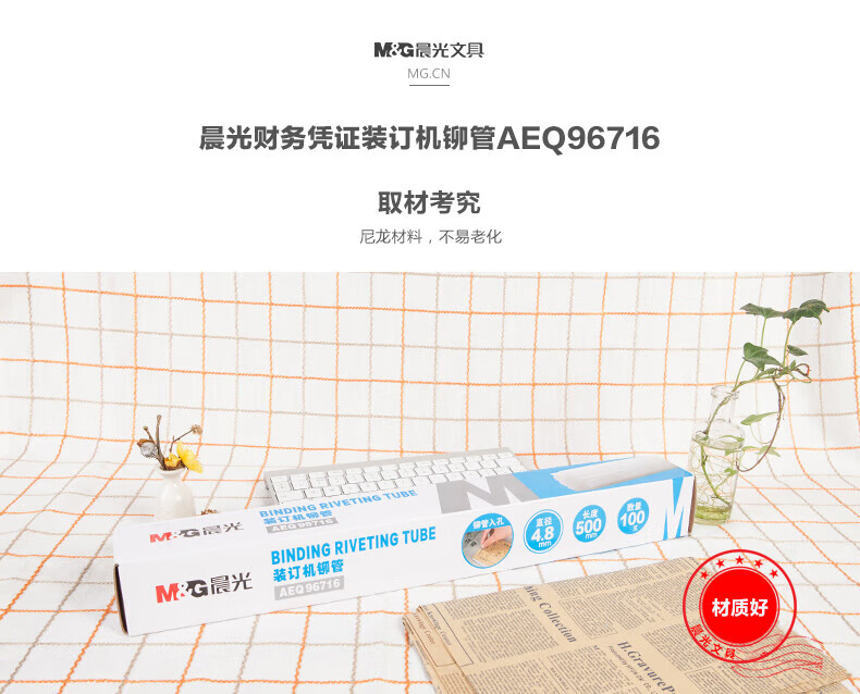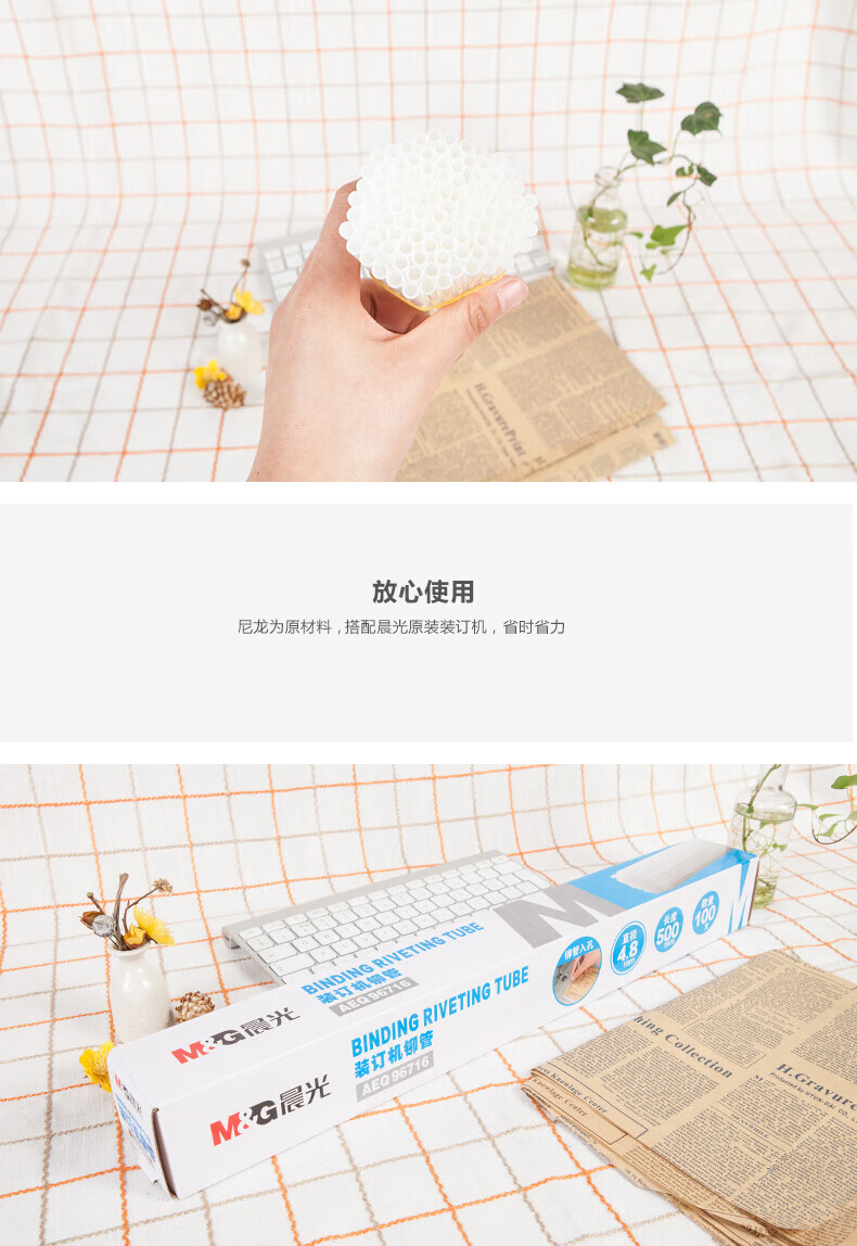 商品名稱:晨光4.8mm*500mm財務(wù)裝訂機鉚管 透明裝訂耗材 100支/盒AEQ96716